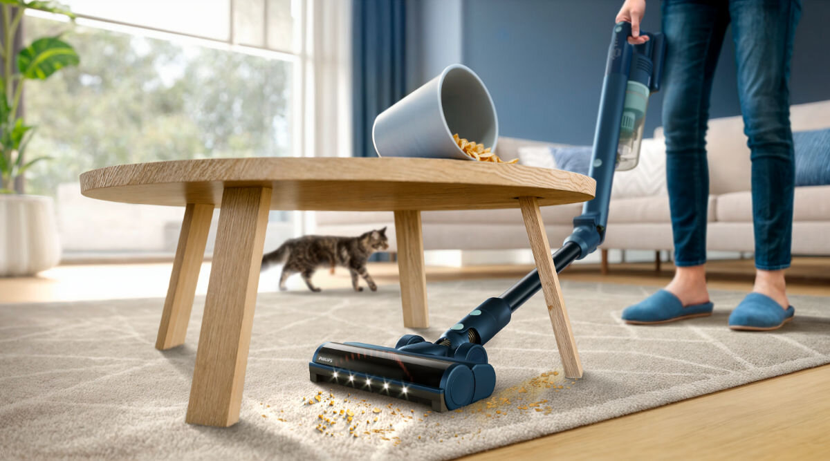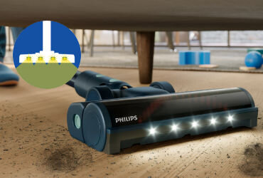 Nasadka odkurzacza Philips z serii Aqua 5000 zapewnia optymalną wydajność zarówno na dywanach, jak i twardych podłogach, bez konieczności zmiany nasadki lub urządzenia.
