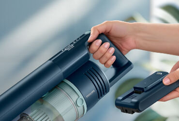 Akumulator można łatwo wyjąć, co pozwala ładować go w dowolnym miejscu. Jest możliwość zakupu dodatkowego akumulatora umożliwiającego nieprzerwane sprzątanie, dzięki czemu możesz z łatwością i niemal natychmiast wznowić pracę w miejscu, w którym została przerwana.