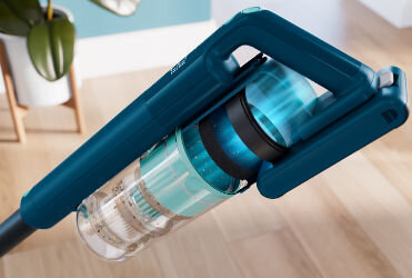 98,5%3 drobnego kurzu i brudu nie wydostanie się na zewnątrz, dzięki trzem bardzo skutecznym filtrom. Po usunięciu nieczystości z podłogi pozostaną szczelnie zamknięte wewnątrz odkurzacza.