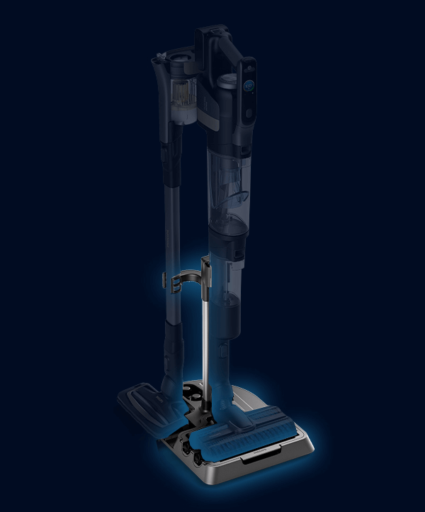 3w1 Jedyne na rynku rozwiązanie, które łączy w sobie 3 urządzenia: bezprzewodowy odkurzacz z funkcją aktywnego mycia, bezprzewodowy odkurzacz z nasadką z podświetleniem LED i odłączany odkurzacz ręczny.