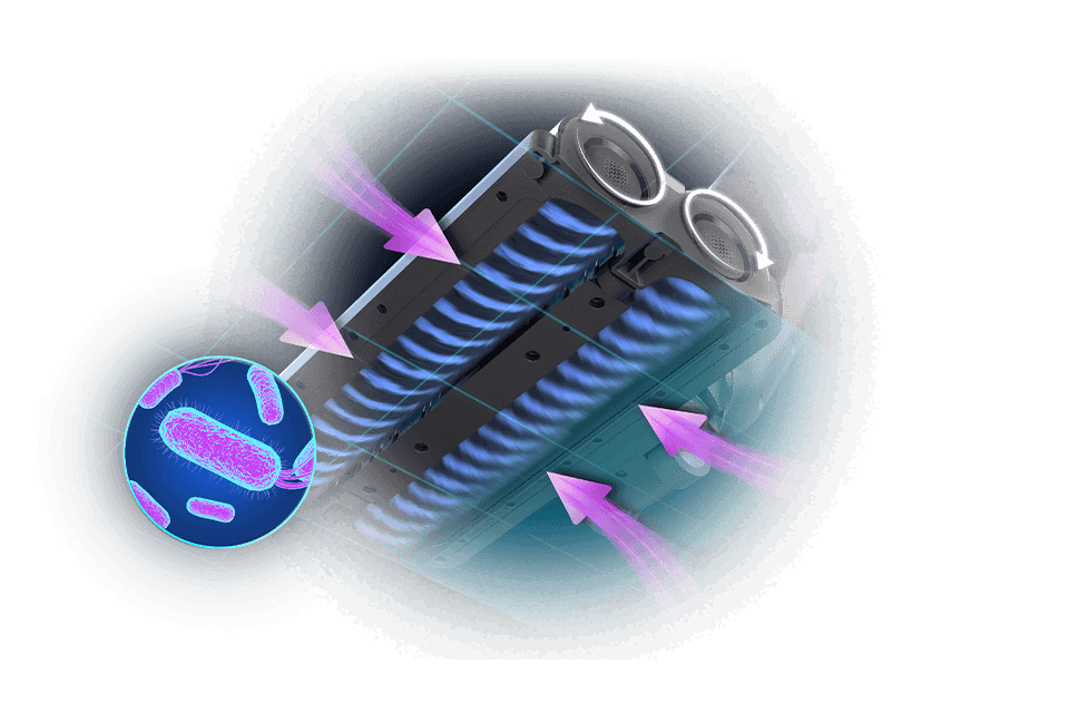 skutecznie odkurza podłogi twarde i dywany usuwając do 98% kurzu i brudu przy każdym ruchu.