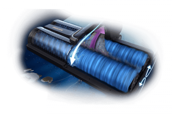 dwie ultramiękkie szczotki PowerBrush z mikrofibry obracają się w przeciwnych kierunkach z prędkością aż 4500 obrotów na minutę, dzięki czemu brud na nich nie osiada i jest zasysany bezpośrednio do urządzenia.