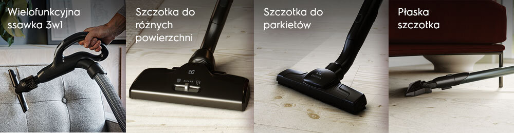 | Dysze/szczotki: | Ssawka 3w1, Ssawko-szczotka dywanowo-podłogowa, Szczotka do parkietu |