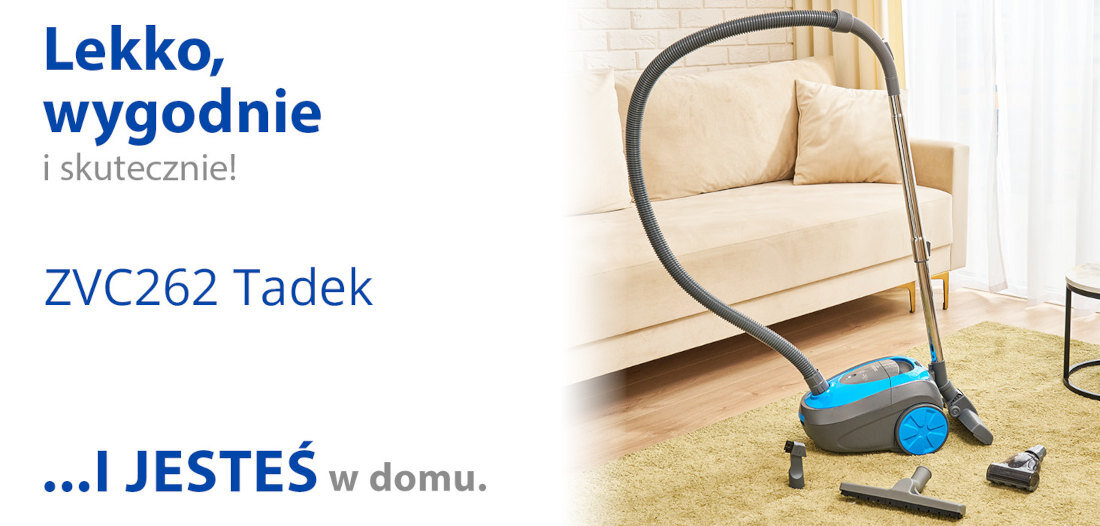 ZVC262 Tadek oferuje więcej niż tylko sprzątanie. Z pojemnym workiem 2,5 litra możesz sprzątać dłużej bez przestojów na wymianę worka lub opróżnienie pojemnika. Sprawdź jak efektywnie możesz zadbać o czystość w swoim domu!