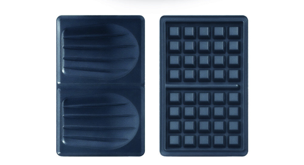 Dwa wyjmowane zestawy płyt do gofrów i trójkątnych kanapek.