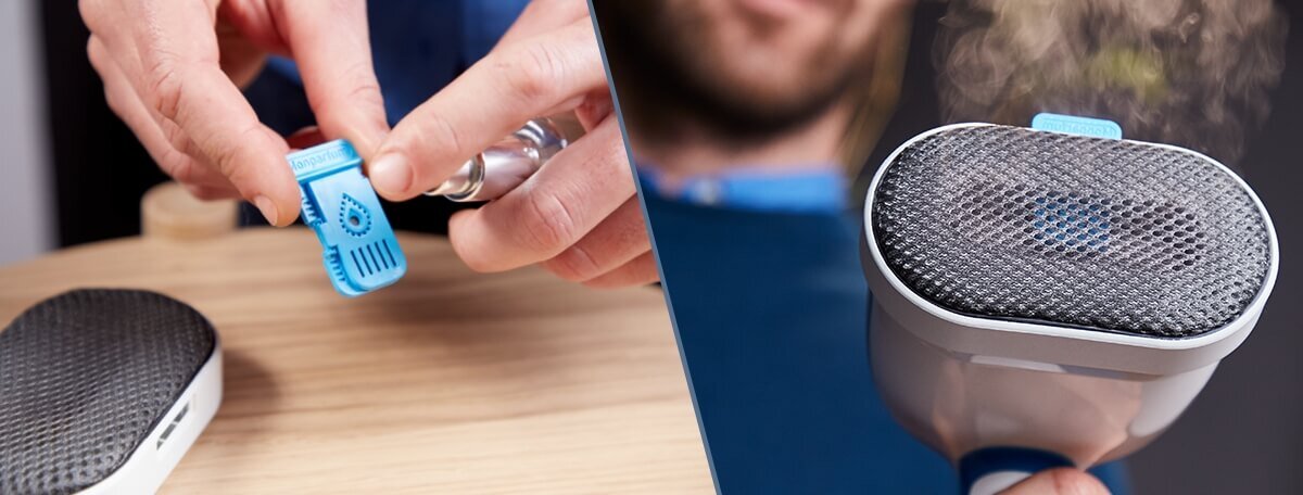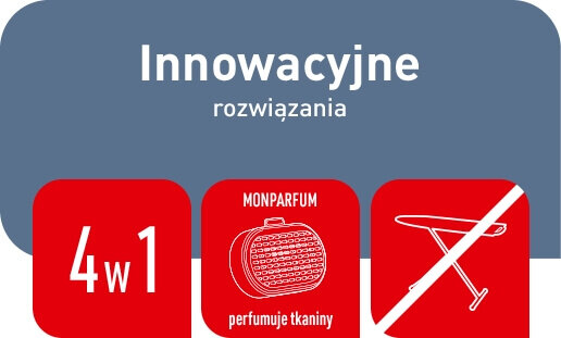 Akcesorium MonParfum umożliwia perfumowanie tekstyliów podczas prasowania. Wystarczy wyciągnąć MonParfum, dodać kilka kropli ulubionych perfum i ponownie zainstalować.