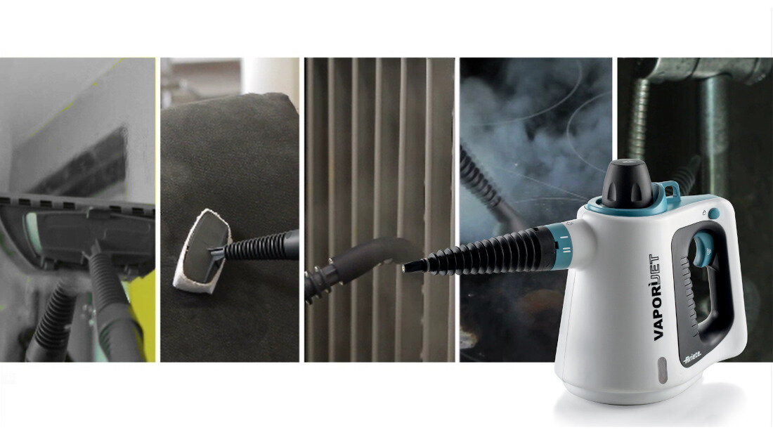 Gorąca para umożliwia czyszczenie przeróżnych powierzchni – wystarczy, że są one odporne na wilgoć i temperaturę. Dzięki temu parownica ARIETE 4137 Vapori Jet pomaga dokładnie umyć okna, bez pozostawiania smug i zacieków. Urządzenie nadaje się także do czyszczenia fug, trudno dostępnych miejsc, kafelek oraz zaschniętych resztek jedzenia i tłuszcza. Parownica pozwala dokładnie, łatwo i szybko wyczyścić piekarnik, mikrofalówkę, blat w kuchni, czy płytki. Dzięki odpowiedniej końcówce pomaga odświeżyć meble tapicerowane np. kanapę.