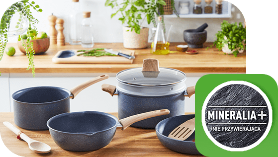 Patelnie linii Natural Force charakteryzują się wyjątkową trwałością, łatwością i wygodą w czyszczeniu. Specjalna powłoka Mineralia+ została wzmocniona minerałami, dzięki czemu sprawia, że potrawy nie przywierają, a Ty możesz ograniczyć ilość zużywanego tłuszczu.