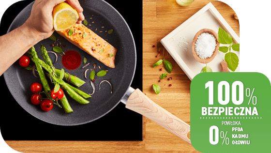 Patelnie Natural Force zostały pokryte nieprzywierającą powłoką zarówno od wewnątrz jak i na zewnątrz, dzięki czemu gotowanie jest jeszcze łatwiejsze i przyjemniejsze, a czyszczenie wyjątkowo proste. Nic nie przywiera, a Ty oszczędzasz czas i masz pewność, że Twoje dania są zawsze idealnie przyrządzone.
