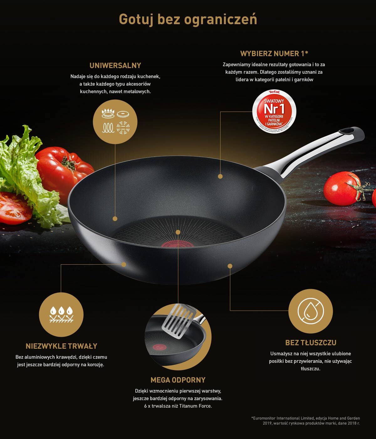 - Patelnia wok TEFAL G2691972 Excellence 28 cm Beztłuszczowa