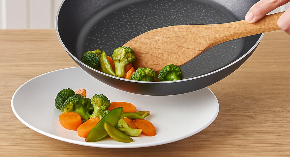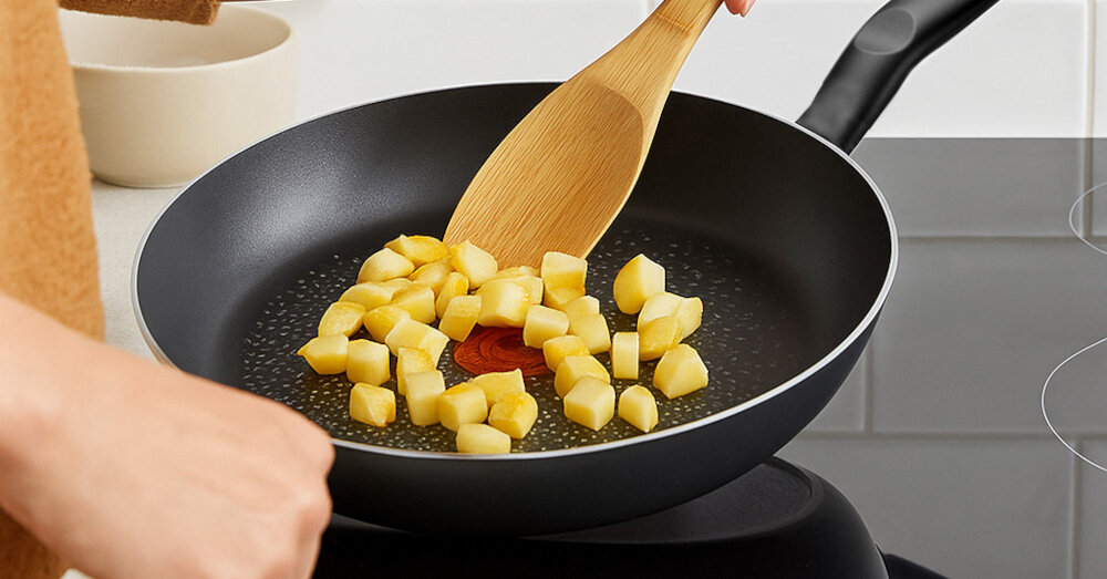 Dno Diffusion Base zostało zaprojektowane tak, aby jednolicie rozprowadzać ciepło na całej powierzchni patelni. Dzięki temu potrawy smażą się i duszą w sposób idealnie równomierny – bez ryzyka przypaleń czy niedogotowanych miejsc. Efektem są doskonale przyrządzone dania, które zachowują naturalny smak, aromat i apetyczny wygląd, a gotowanie staje się jeszcze przyjemniejsze i bardziej przewidywalne.