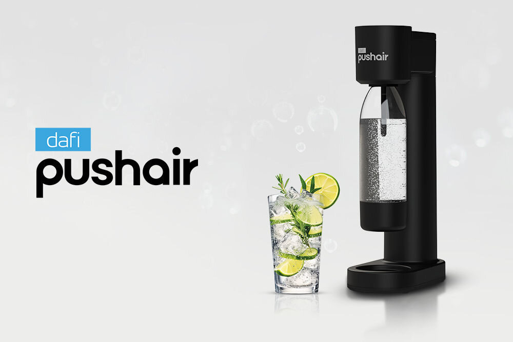 Saturator Dafi Pushair wykonano z wysokiej jakości tworzywa sztucznego wolnego od BPA. Prosty w obsłudze przycisk pozwala przygotować wodę o wybranym stopniu gazowania. Butla CO₂ Dafi Pushair to uniwersalny cylinder służący do nasycania wody dwutlenkiem węgla w saturatorach. Butla o pojemności 425 g ze sprężonym spożywczym dwutlenkiem węgla CO₂ wystarcza na przygotowanie do 60 l napojów. Cylinder można ponownie napełnić lub wymienić w punktach rekomendowanych przez Dafi. Nabój pasuje do większości modeli saturatorów dostępnych na rynku.