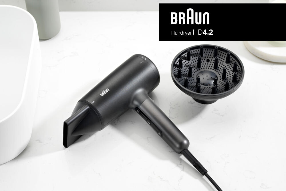 Wszechstronność suszarki Braun HD 4.2 zapewniają trzy precyzyjnie zaprojektowane akcesoria, które umożliwiają doskonałą stylizację różnych rodzajów włosów. Dyfuzor podkreśla i definiuje naturalne loki i teksturę włosów, a jego długie wypustki optymalizują przepływ ciepła i powietrza. Superwąska dysza koncentratora zapewnia szybszą, delikatniejszą i bardziej ukierunkowaną stylizację.