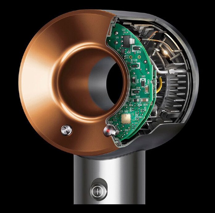 W przeciwieństwie do innych suszarek do włosów, Dyson Supersonic™ mierzy temperaturę powietrza ponad 40 razy na sekundę, na bieżąco ją regulując. Dzięki temu przeciwdziała zniszczeniu włosów i pomaga chronić ich blask.