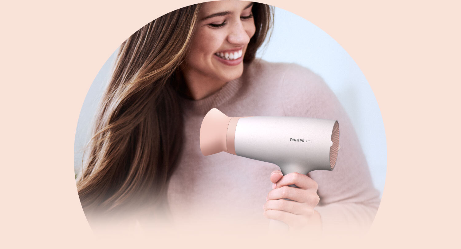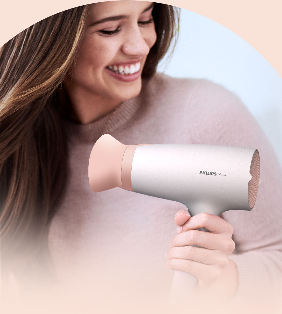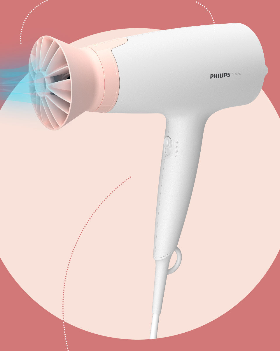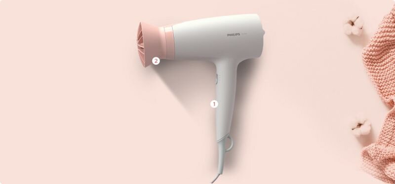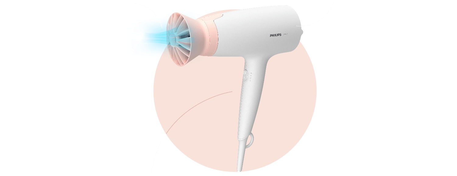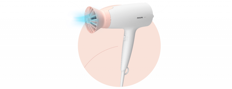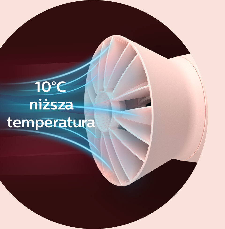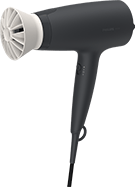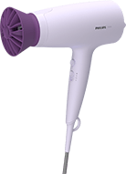 Z suszarką Philips 3000 zadbasz o dobrą kondycję włosów, zapobiegając ich przegrzewaniu. Nasadka ThermoProtect obniża temperaturę suszenia o 10°C, zachowując pełną wydajność działania*.