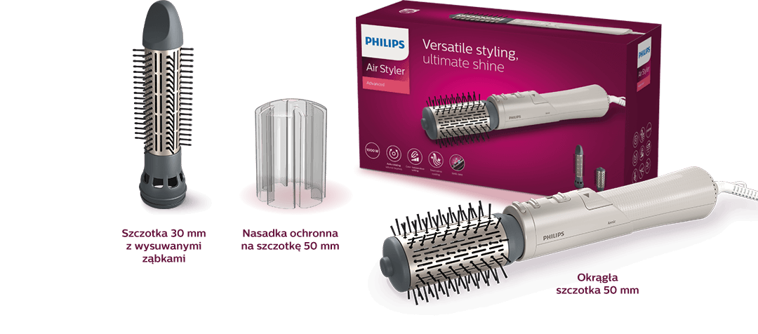 Obrotowa suszarko-lokówka z 2 nasadkami Philips BHA710/00