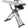 System do prasowania LAURASTAR Smart I ma 6-stopniową regulację wysokości (zakres 83 – 104 cm) oraz zintegrowane kółka, zapewniające łatwość przemieszczania. Urządzenie składa się jednym ruchem, a po złożeniu nie zajmuje dużo więcej niż klasyczna deska do prasowania.