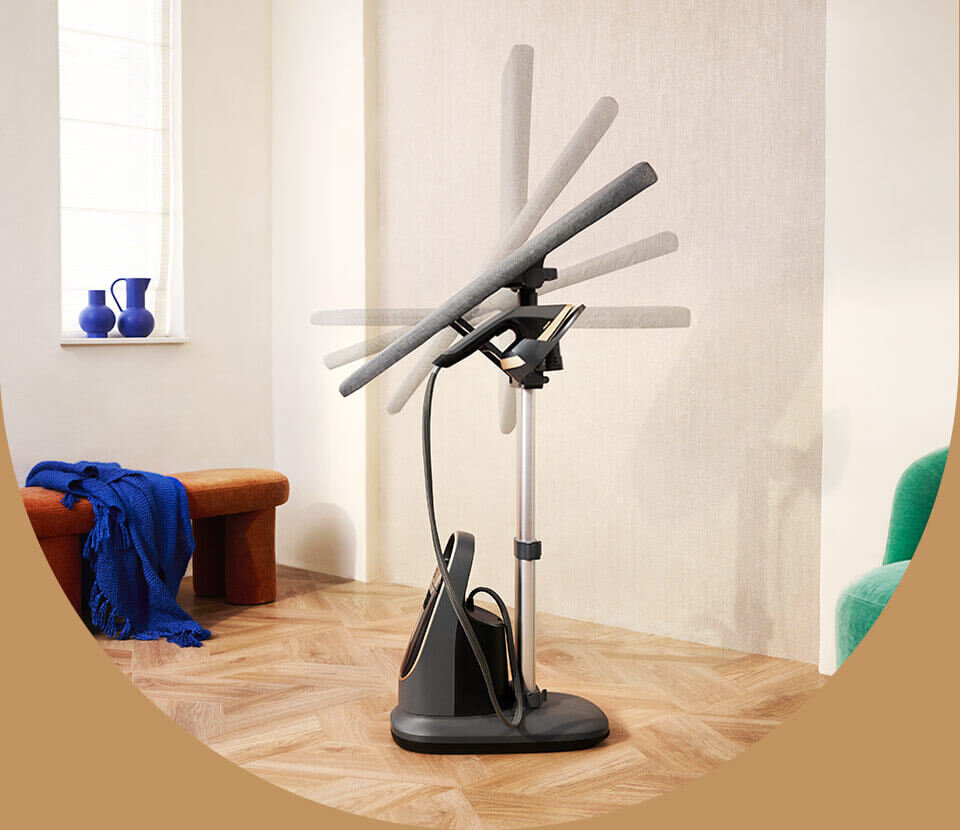 Odświeżanie zasłon oraz firanek w łatwy i szybki sposób, dzięki możliwości odłączenia podstawy od urządzenia