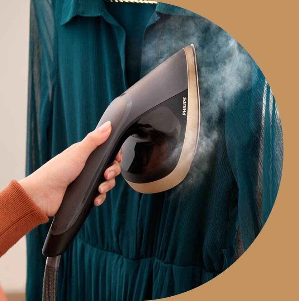 * W porównaniu z żelazkami parowymi w badaniu konsumenckim – test produktowy październik 2022.** W porównaniu z innymi żelazkami parowymi Philips.