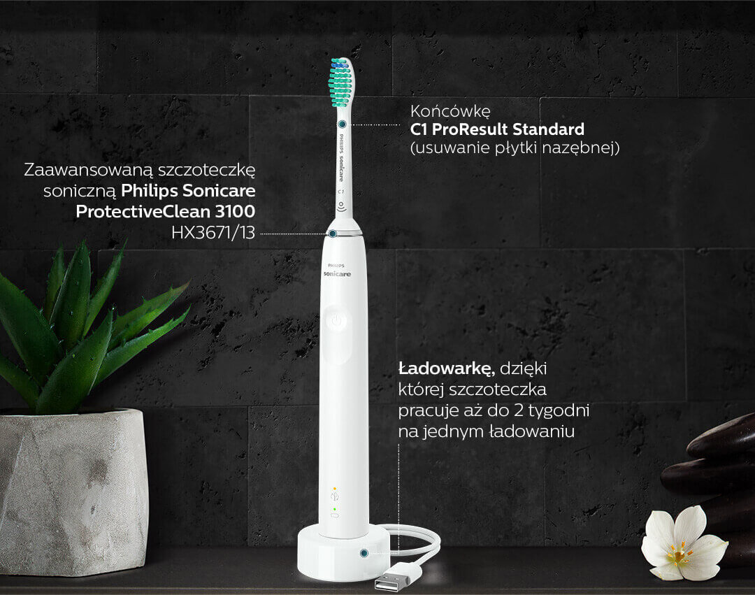 - Szczoteczka soniczna PHILIPS Sonicare Series 3100 HX3671/13