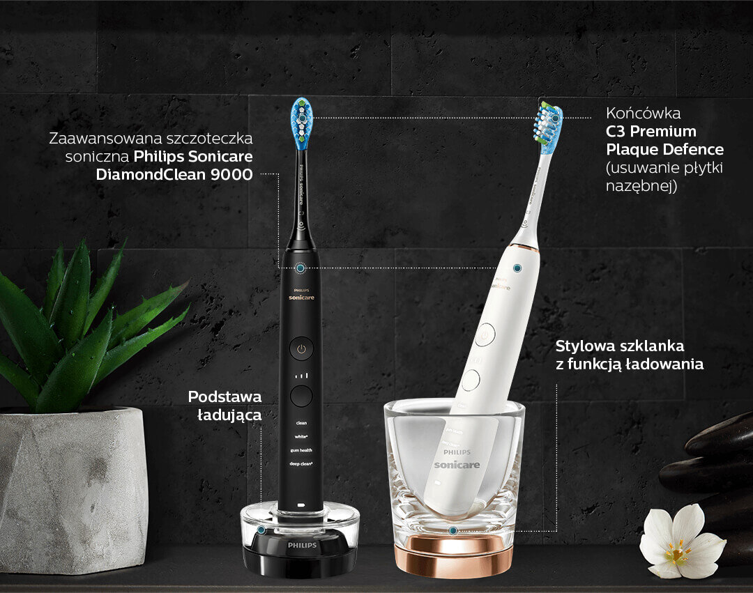 Zestaw szczoteczek sonicznych PHILIPS HX9914/57 (biała/czarna) + szklanka z funkcją ładowania