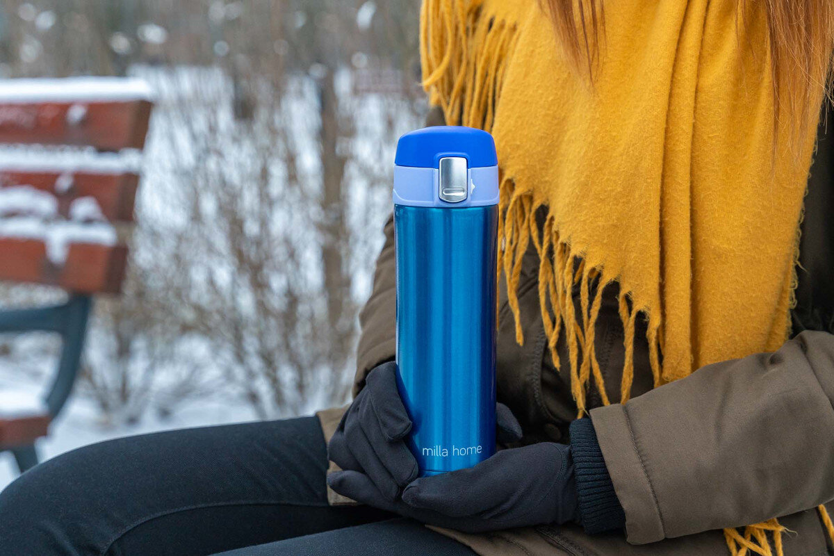 MILLA HOME MKA103B doskonale nadaje się w podróż, ponieważ jego średnica jest dopasowana do większości uchwytów samochodowych i rowerowych, a zamknięcie można łatwo otworzyć jedną ręką. Nie musisz przejmować się rozlaniem napoju, ponieważ pokrywka ma blokadę uniemożliwiającą przypadkowe otwarcie kubka.