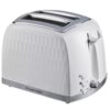 Biały toster RUSSELL HOBBS 26060-56 na 2 kromki posiada teksturowane wykończenie ze wstawkami ze stali nierdzewnej, która wyróżnią się na każdym kuchennym blacie. Ten modny biały toster z wykończeniem Premium White Plastic o strukturze inspirowanej plastrem miodu jest idealnym dodatkiem do Twojej kuchni.