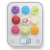 Gładka powierzchnia wykonana ze szkła hartowanego, precyzyjny pomiar - z dokładnością do 0.5g, Maksymalny ciężar - do 5 kg, wygodne użytkowanie - funkcja tarowania, wszechstronność - suche i płynne składniki, oszczędność - automatyczne wyłączanie, gotowa do użycia - W pudełku znajdują się baterie LR03 AAA.
