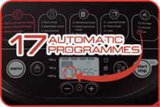 Przyjemność i dobre samopoczucie w jednym! 17 automatycznych programów do wypieku wspaniałego chleba, w tym 3 programy bezglutenowe, ciast, przygotowywanie ciasta do pizzy, dżemów, owsianki i płatków zbożowych. |