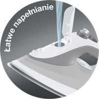 Żelazka parowe BRAUN SI3055 BK zostały wyposażone w duży, 270-mililitrowy pojemnik na wodę. Dla pełnej wygody prasowania, żelazko można napełniać wodą prosto z kranu, antywapienny system Self Clean zapewnia bezpieczeństwo jej wykorzystania. Praktyczny otwór i wygodne zamknięcie ułatwiają uzupełnianie poziomu wody, a dzięki tak dużej pojemności zbiornika, prasowanie jest prostsze i zajmuje mniej czasu, ponieważ nie trzeba go często napełniać.