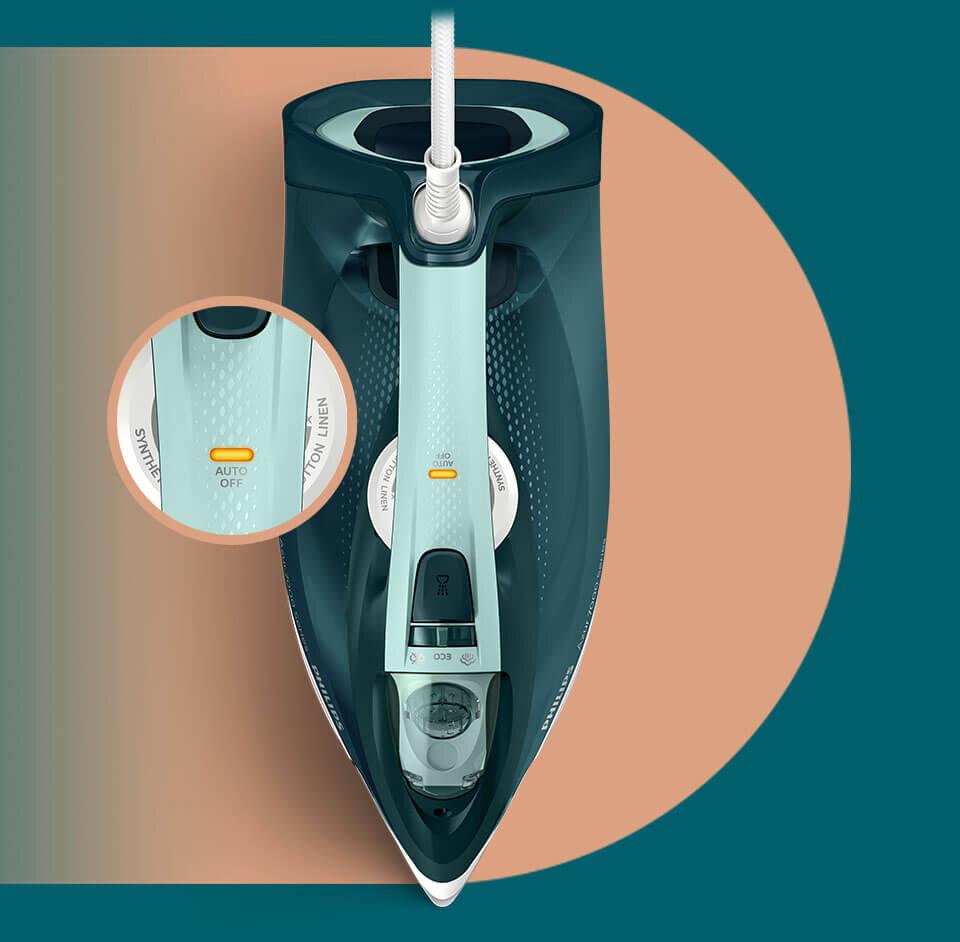 Aby zapewnić Ci bezpieczeństwo, znajdujące się w bezruchu żelazko wyłącza się. Jeśli pozostawione zostało na stopie, wyłączy się po 30 sekundach. Na podstawie - po 8 minutach.