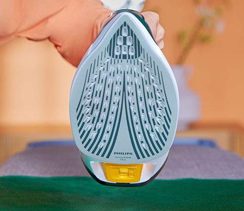 Z wytrzymałą, odporną na uszkodzenia i łatwą do wyczyszczenia stopą SteamGlide Plus, zagwarantowany masz doskonały poślizg, bez względu na rodzaj materiału.