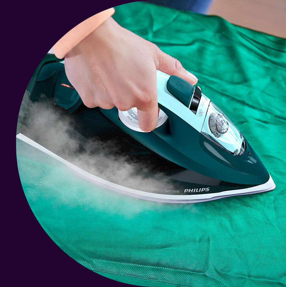 Szybciej i skuteczniej uporaj się z zagnieceniami. Żelazko parowe Philips Azur 7000 błyskawicznie się nagrzewa, dzięki wysokiej mocy 2800 W. Błyskawicznie, zaraz przed wyjściem z domu przygotujesz, to co jest Ci potrzebne.