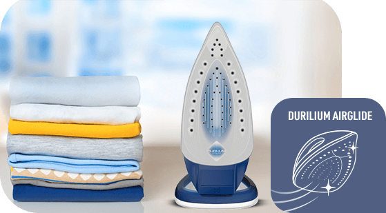 Powłoka stopy Durilium AirGlide sprawi, że żelazko z łatwością ślizga się po tkaninie. Prowadzenie żelazka jest łatwe i przyjemne, wydobycie pary optymalne, a Ty masz pewność, że prasowanie pójdzie gładko.