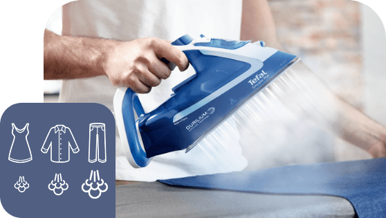 Żelazko Tefal Easygliss Plus wyręczy Cię w dobieraniu odpowiedniej temperatury i ilości pary do rodzaju tkaniny. Wystarczy, że wybierzesz typ prasowanego materiału, a żelazko dostosuje do niego automatyczne ustawienia prasowania.