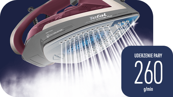 Żelazko dokładnie rozprowadza parę we wszystkich otworach: na czubku, po bokach oraz po środku stopy. Dzięki temu prasowanie jest wyjątkowo skuteczne.
