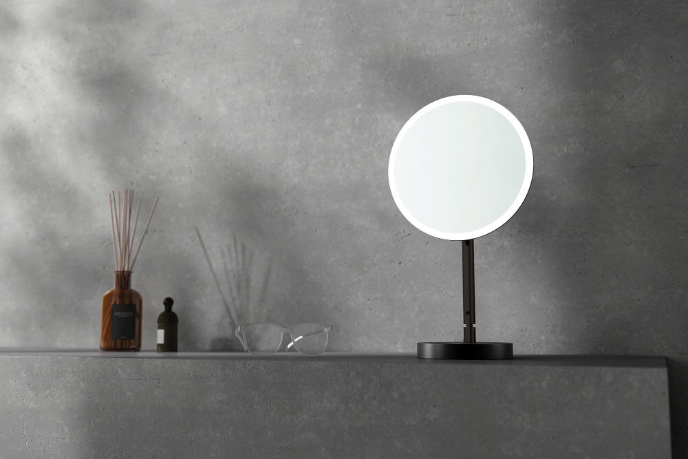 Lusterko wyposażone jest w światła LED, które są równomiernie rozmieszczone wokół niego, aby precyzyjnie oświetlić twarz. Wedle potrzeb możesz zmieniać światło z ciepłego na chłodne i odwrotnie. Światło zimne posłuży do robienia makijażu dziennego, a ciepłe do szykowania się na wieczorne wyjście. Dodatkowo lustro posiada wbudowaną pamięć pozwalającą na zapamiętanie ostatnich ustawień.