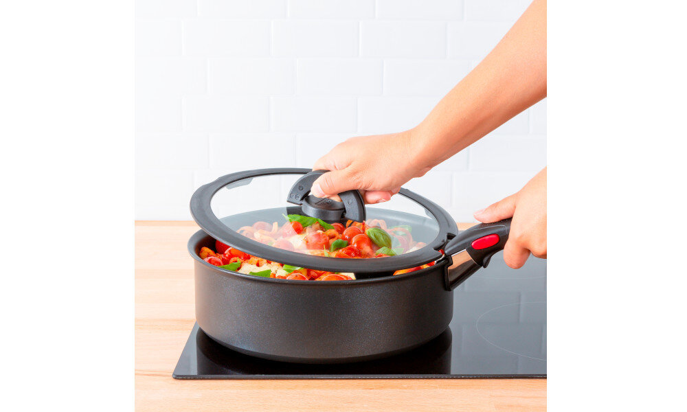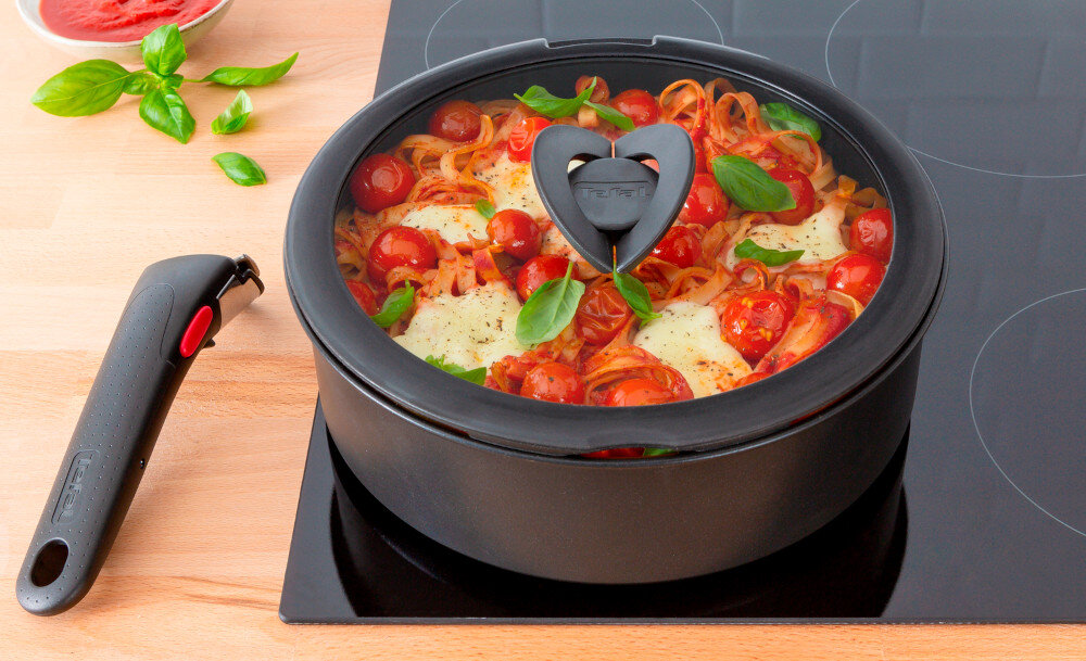 Wszystkie naczynia Ingenio są ze sobą kompatybilne dzięki czemu pokrywek możesz używać do każdego rodzaju naczyń: patelni, garnków, rondli.