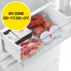 Funkcja MyZone umożliwia łatwe dostosowanie temperatury (od -3°C do +5°C) w zależności od tego, jakie produkty żywnościowe mają być w niej przechowywane. Dostępne opcje obejmują ustawienia przystosowane do przechowywania warzyw i owoców, mięsa i serów, produktów przeznaczonych do rozmrożenia, owoców morza czy artykułów do szybkiego schłodzenia.