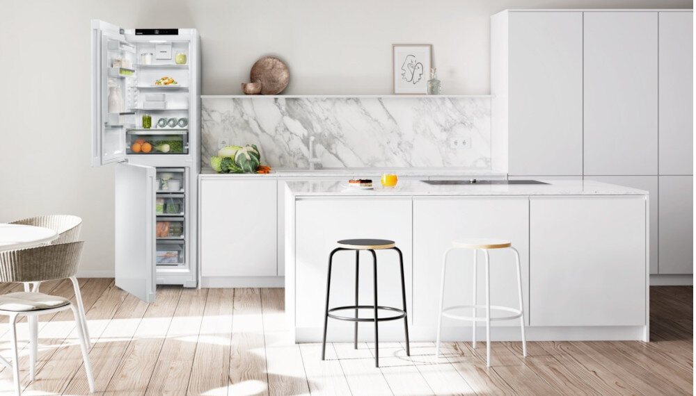 Zapach niektórych produktów spożywczych może być niekiedy odbierany jako niezbyt przyjemny. Dla lodówki LIEBHERR to jednak nie problem: dzięki filtrowi z węglem aktywowanym FreshAir we wnętrzu zawsze panuje świeże powietrze. Filtr znajduje się bezpośrednio na drodze strumienia powietrza w obudowie wentylatora i w ten sposób neutralizuje w znacznym stopniu zapachy. Wskaźnik przypomina o wymianie filtra.