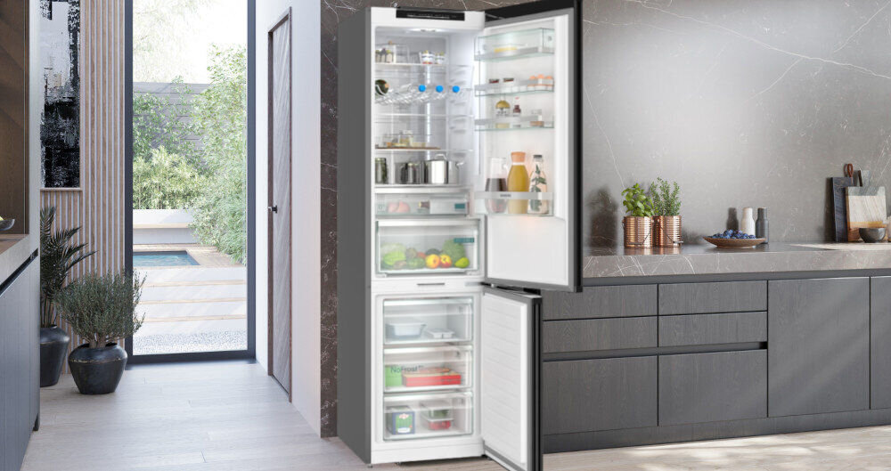System oświetlenia LED w lodówce zapewnia doskonałą widoczność wnętrza, zarówno w chłodziarce, jak i zamrażarce. Światło LED jest umieszczone z przodu, co zapobiega jego zasłonięciu przez produkty, a w modelach z Home Connect, oświetlenie można regulować za pomocą aplikacji.