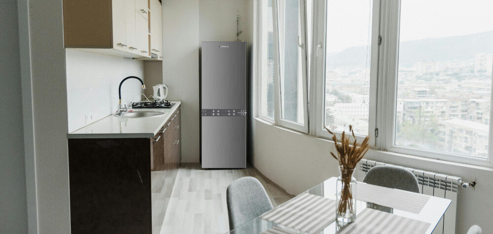 Lodówka SMITH&BROWN SFBF-211-SE3 z wbudowanym uchwytem w drzwiach doskonale wpasowuje się w wystrój kuchni, nadając jej elegancki i spójny wygląd. Dzięki brakowi wystających elementów, jak klasyczne uchwyty, lodówka prezentuje się estetycznie, co sprawia, że doskonale komponuje się z resztą zabudowy kuchennej. Takie rozwiązanie jest nie tylko stylowe, ale również niezwykle praktyczne. Ułatwia utrzymanie czystości, minimalizuje ryzyko zahaczenia ubraniem o uchwyty oraz zwiększa komfort użytkowania, co czyni je bardzo wygodnym wyborem do wnętrz kuchennych.