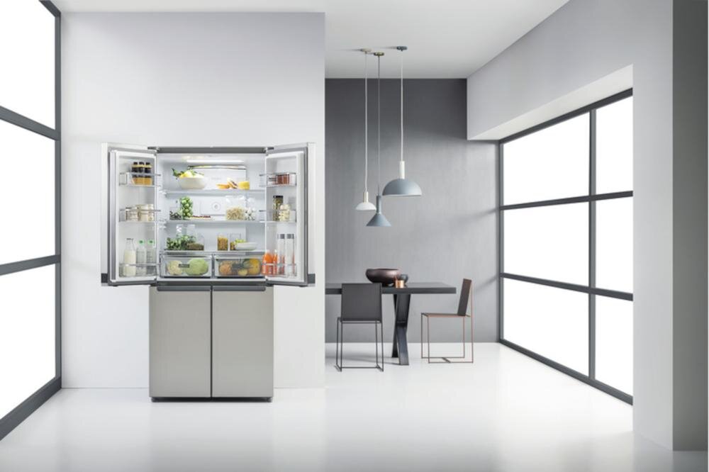 Szklane półki z zaokrąglonymi krawędziami, które zapobiegają wyciekom - dodają elegancji wnętrzu lodówki oraz pozwalają na praktyczne wykorzystanie przestrzeni do przechowywania żywności. Warto zwrócić także uwagę na funkcję szybkiego chłodzenia, której celem jest spadek temperatury, gdy dokłada się nowe produkty. Czujniki automatycznie dostosowują temperaturę chłodzenia. Zapewnia to małe zużycie energii i długotrwałą świeżość.