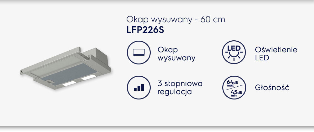 - Okap ELECTROLUX LFP226S Szary 330m3/h 64dB klasa C
