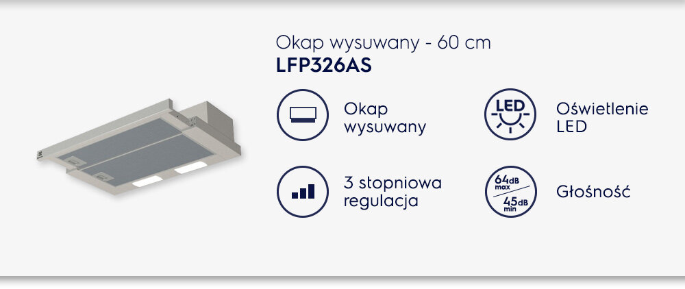 Okap ELECTROLUX LFP326AS Szampański 410m3/h 69dB klasa C