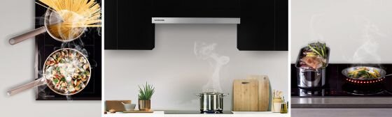 Skutecznie usuniesz wszystkie powstające opary i zapachy, nawet gotując jednocześnie kilka dań. Ułatwi Ci to odpowiednio duża moc ssąca i 3 stopnie regulacji szybkości wyciągu.