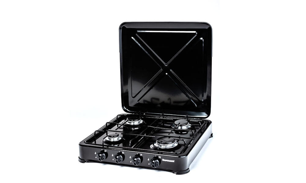Skorzystaj z wygodnej kuchenki nastawnej gazowej marki RAVANSON. Jest to urządzenie, dzięki któremu wygodnie i szybko ugotujesz obiad lub coś podgrzejesz. Płyta posiada cztery pola mocy cieplnej, metalowy ruszt, obudowę, praktyczną pokrywę, a także stabilną podstawę. Urządzenie wykonane jest z wysokiej jakości stali emaliowanej. Zabronione jest użytkowanie tego urządzenia w pomieszczeniach mieszkalnych.