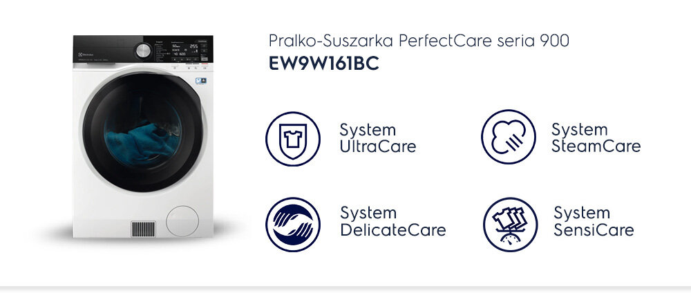 Wykorzystujący pompę ciepła system DelicateCare dostosowuje niską temperaturę i ruchy bębna do rodzaju tkaniny.