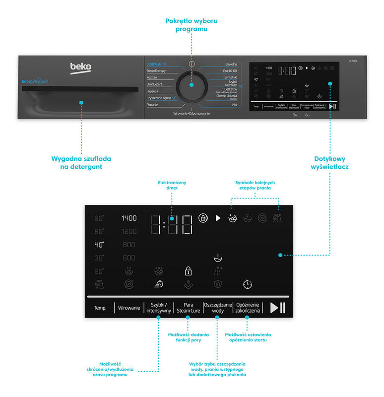 Ciesz się nową pralką Beko, która urzeknie Cię zarówno nowoczesnym designem, jak i wygodą codziennej obsługi.