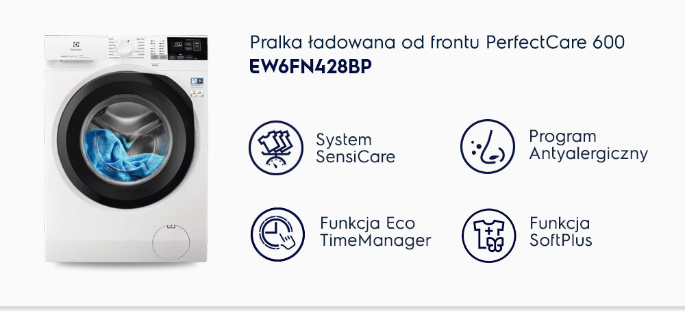 - Pralka ELECTROLUX EW6FN428BP SensiCare 600 8 kg 1200 obr TimeManager Woolmark Blue